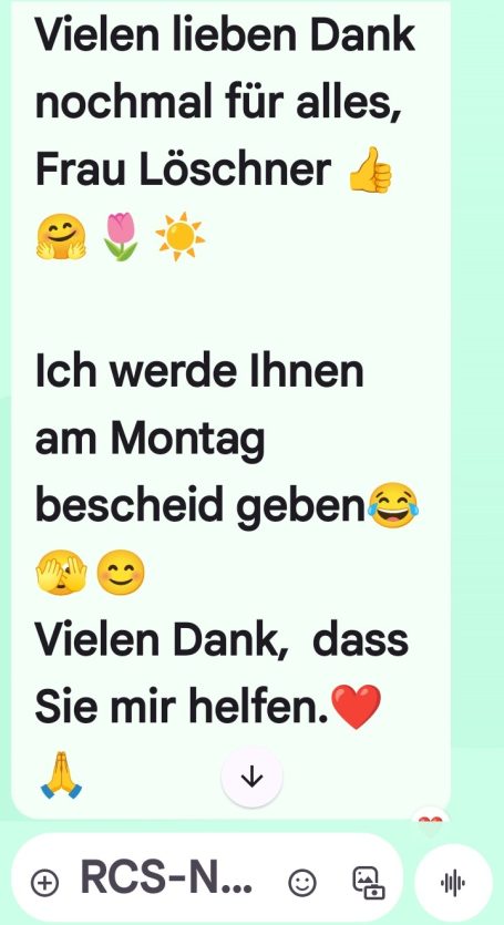 Hinterlasse mir gerne eine Nachricht bezüglich Deines Anliegens oder bei Fragen. Vielen Dank.
